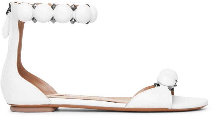 Alaia Bombe White Calf Leather Flat Sandals Shopstyle
