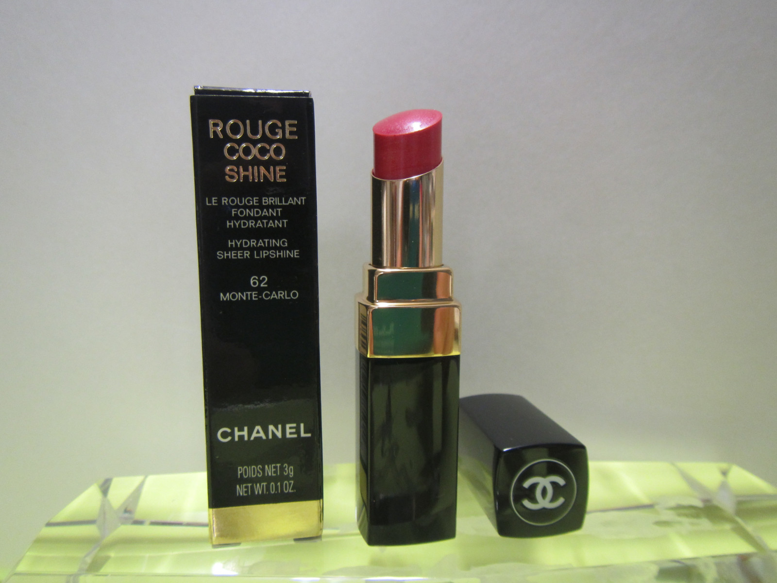 62 MonteCarlo (Rouge Coco Shine) This color has a slight sparkle in it but hardly noticeable on the lips This color was also the glossiest and hardest to get an even coat across the lips I feel like that's because it was so glossy though And though I do love the color, I don't think I would get it because the others seemed to apply much. The Chanel Le Rouge Collection Spring 14 family plum From left Rouge Coco 62 Irresistible, rosewood with silver shimmers Rouge Coco Shine 90 Mutine, soft iridescent pink with silver shimmer Rouge Coco Shine 92 Émotion, rosy plum intense shine Rouge Allure 145 Rayonnante, deep fuchsia with mauve shimmer Rouge Allure Velevet 47 L’Amoureuse, an intense rosewood. Chanel Rouge Coco Shine in Monte Carlo 62 (pink red) It is a pink red, which makes it more or less raspberry in a pretty shiny diluted kind of way There’s a lot of pink in this raspberry, and it’s shining from within, so it not dark But it’s definitely a bright shade.