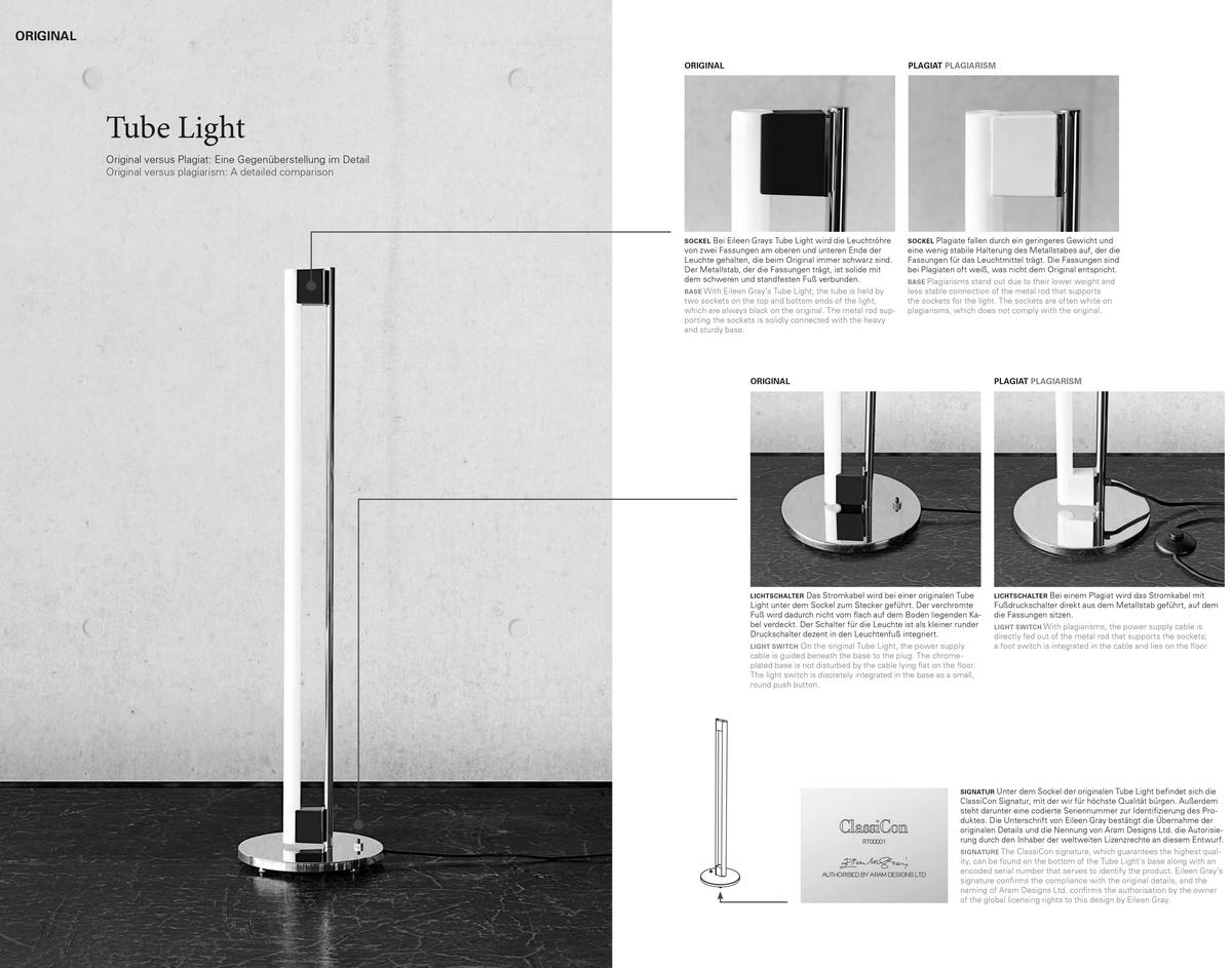 Floor Lamps Irishborn Eileen Gray was a pioneer of modern design in the s and 30s, and her tubular furniture, which was considered revolutionary in its day, is now lauded as classic The TUBE light is emblematic of this aesthetic, constructed primarily of chromateplated tubular steel. He used the ‘Lampe Gras’ in his architectural works and in his own office Following suit, Robert MalletStevens, Eileen Gray, Michel RouxSpitz, Sonia Delaunay, Georges Braque and many other avant garde figures adopted the lamps, helping them achieve their legendary status DCW5BLCH black arm with polished chrome shade DCW5WH. The Eileen Gray signature stamp that appears on the inside of the outer upright tube was introduced about 8 years ago This stamp also has a unique identification number, the words AUTHORISED BY ARAM DESIGNS LTD, and the ClassiCon logo (ClassiCon is Aram’s sublicence holder in Germany).