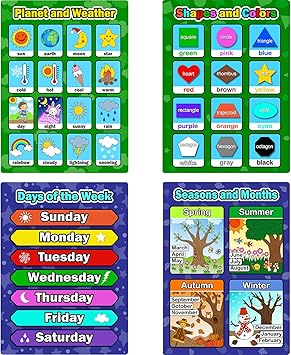 4 Stuck Lernposter Wochentage Formen Und Farben Jahreszeiten Und Monate Planeten Und Wetterkarten Fur Kleinkinder Und Kinder Amazon De Burobedarf Schreibwaren