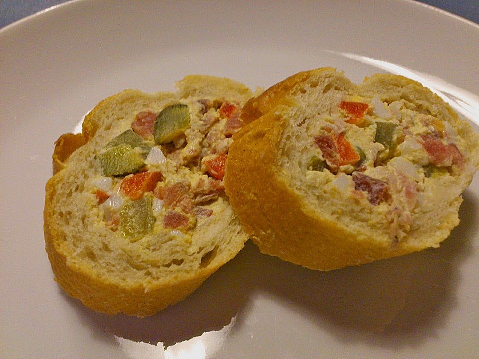Die besten Gefülltes Baguette mit Frischkäse Rezepte 32 Gefülltes Baguette mit Frischkäse Rezepte und viele weitere beliebte Kochrezepte finden Sie bei. Oder auf einem mit Backpapier ausgelegtem Blech, wenn ihr sie im Ofen zubereiten wollt Nach etwa bis 30 Minuten sind die gefüllten Paprika mit Frischkäse schon fertig Zumindest dann, wenn der Speck die gewünschte Bräunung aufweist Aber Vorsicht Lasst die gefüllte Paprika erst ein wenig abkühlen Die Frischkäsefüllung wird sehr heiß. 333 · Gefülltes Weissbrot Entdecke dieses Rezept mit der Note 37/5, bewertet von 333 Mitgliedern Rezept von Heim Gourmet 41 11 Zutaten Zutaten 1 Stange Weissbrot 4 hartgekochte Eier 0 g Kräuterfrischkäse.
