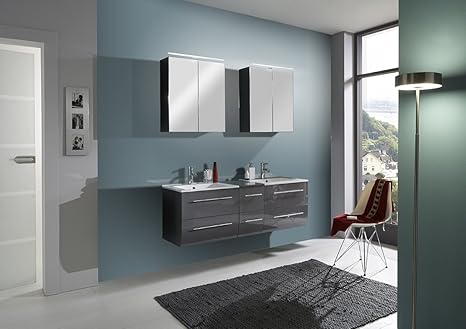 Sam Design Badmobel Set Zurich 150 Cm In Hochglanz Grau 2tlg Designer Badezimmer Mit Softclose Funktion 1 Doppel Waschplatz Mit Mineralgussbecken Und 1 Spiegelschrank Amazon De Kuche Haushalt