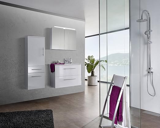 Sam Design Badmobel Set Verena 80 Cm In Hochglanz Weiss 3tlg Designer Badezimmer Mit Softclose Funktion 1 Waschplatz 1 Spiegelschrank 1 Hochschrank Amazon De Kuche Haushalt