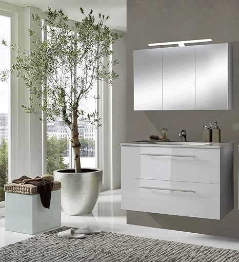 Sam Design Badmobel Set 90 Cm In Hochglanz Weiss 2tlg Designer Badezimmer Mit Softclose Funktion 1 Waschplatz 1 Spiegelschrank Amazon De Kuche Haushalt