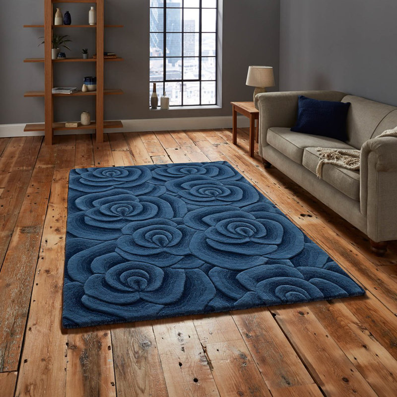 Ebern Designs Handgetufteter Teppich Finnley Aus Wolle In Blau