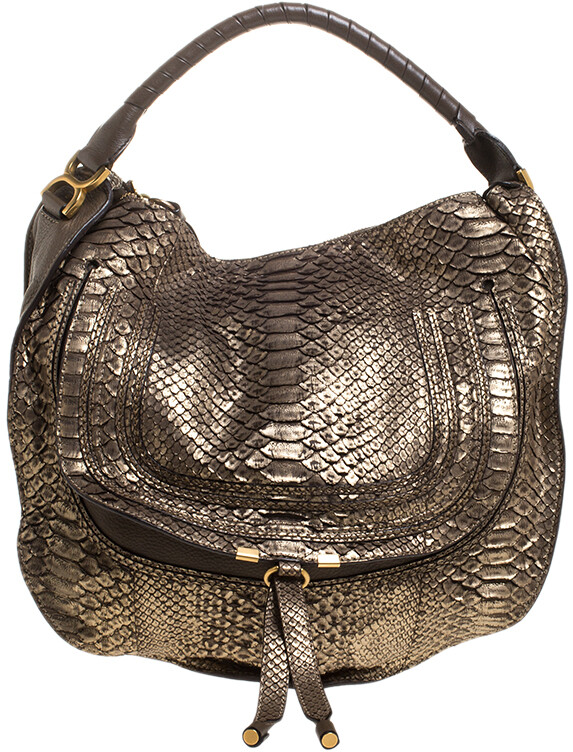 Chloe Gold Brown Python And Leather Large Marcie Hobo Shopstyle