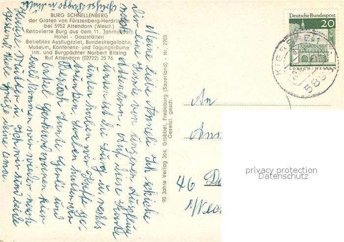 Attendorn Burghotel Schnellenberg Nr Oldthing Ansichtskarten Postleitzahl 50 59