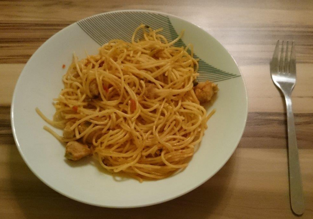 Asiatische Nudeln In Tomaten Kokos Sosse Mit Curry Schnitzelchen Rezept Lecker