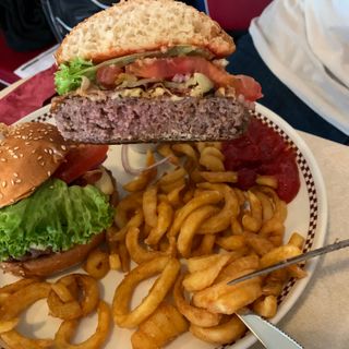 Lecker The Radio City Burger Mit Curly Fries Und Hot Spicy Sauce Bild Von Kullman S Grill Diner Wurzburg Tripadvisor