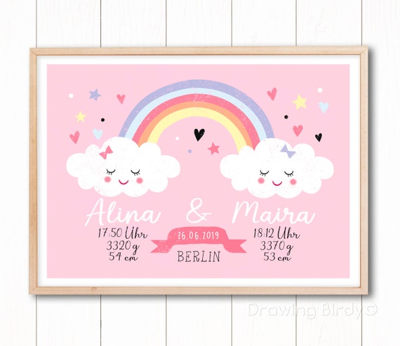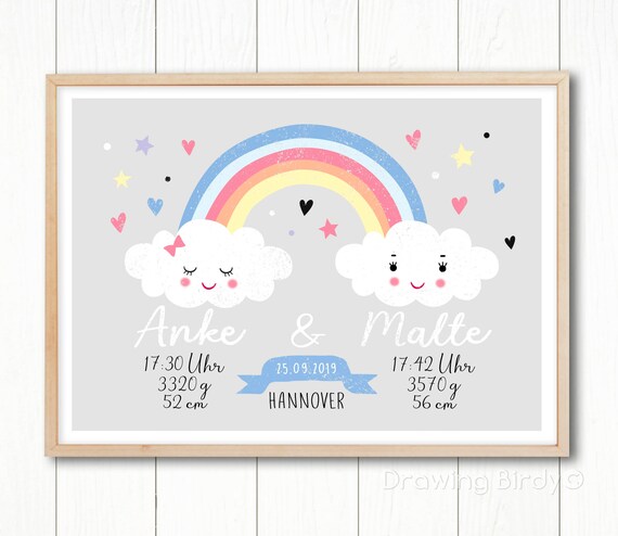 Zwei Wolken Geburtsanzeige Zwillinge Personalisiert Etsy