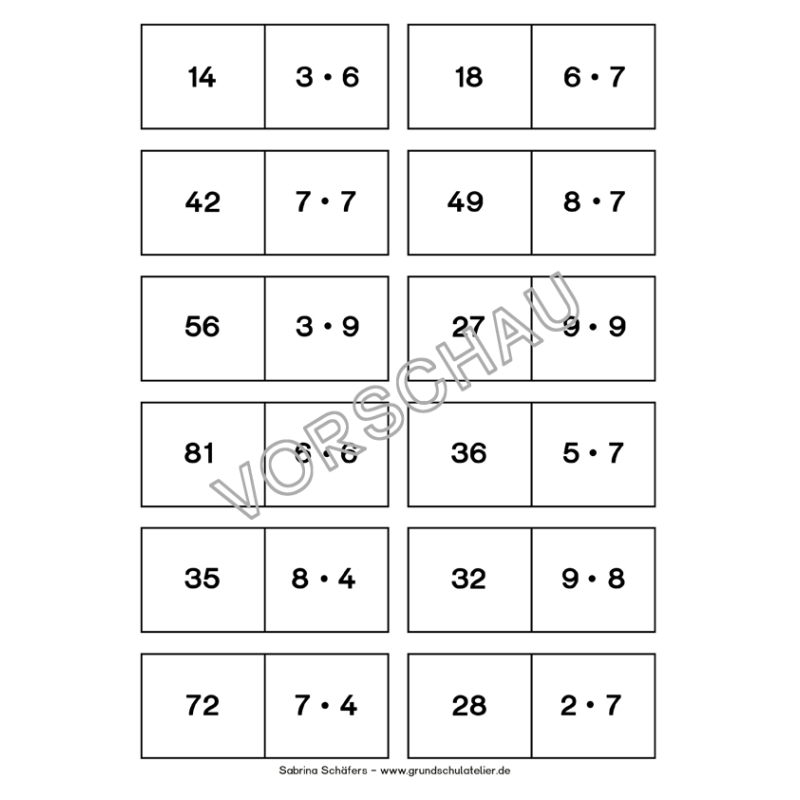 Die Kinder können jedes Mal aufs Neue den Schwierigkeitsgrad selbst bestimmen, indem sie die natürlichen Zahlen auswählen. Die Arbeitsblätter bieten viele verschiedene Möglichkeiten, die Reihen zu lernen und zu wiederholen Auch für die 8erReihe kannst du einige der Reihen, die du schon gelernt hast, verwenden Diese EinmaleinsReihe wird eine der letzten sein, die du lernen wirst. Arbeitsblätter, Freiarbeitskarteien, Lernwerkstätten, Stationsläufe, Lernspiele und Übungsmaterial für das Lernen zu Hause Gummispannkarten großes Einmaleins Unterrichtsmaterial im pdfFormat PDF Durchschnittliche Artikelbewertung 5 Sterne 4 Sterne.