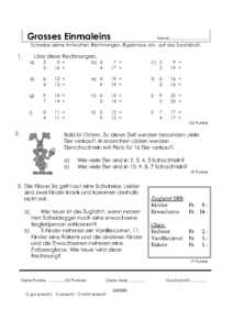 Klassenarbeit Zu Grosses Einmaleins Klassenarbeiten Einmaleins Grosses Einmaleins