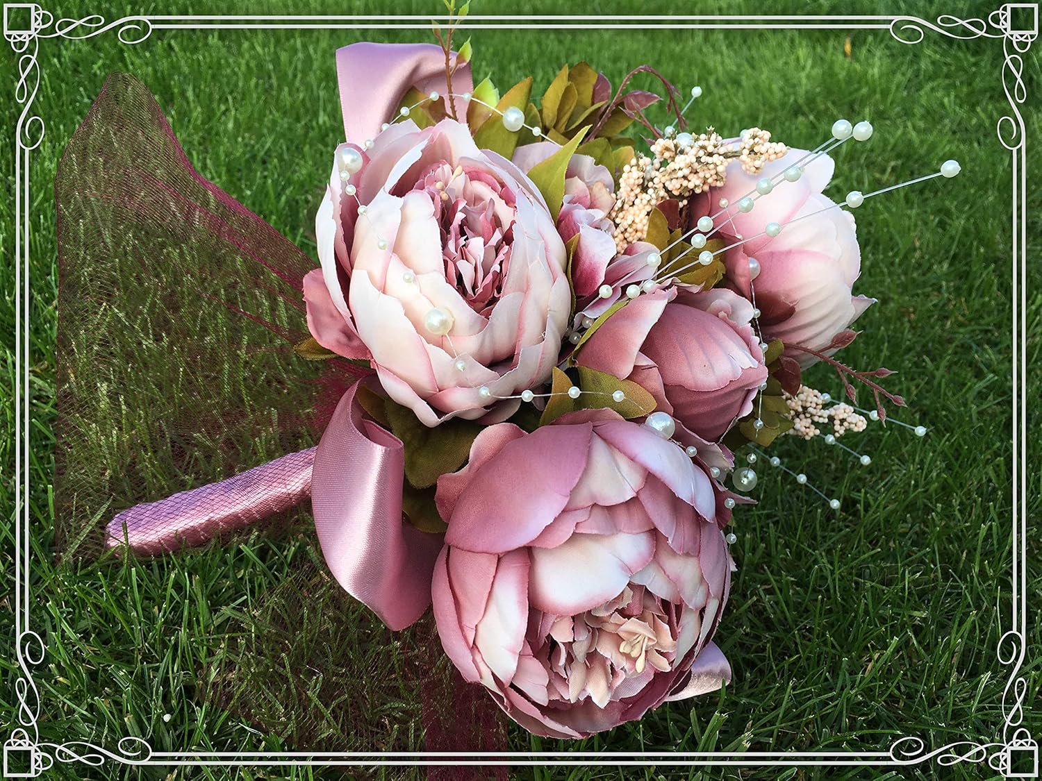Ondego Brautstrauss Blumenstrauss Blumen Hochzeit Braut Strauss Altrosa Rosa Creme Pfingstrosen Kunstblumen Vintage Amazon De Handmade