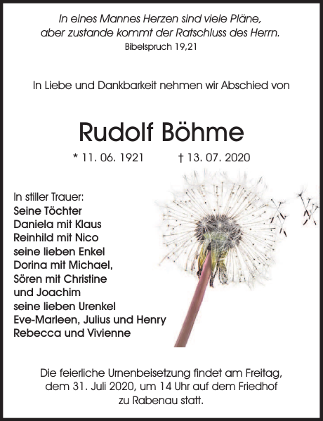 Rudolf Bohme Traueranzeige Sachsische Zeitung