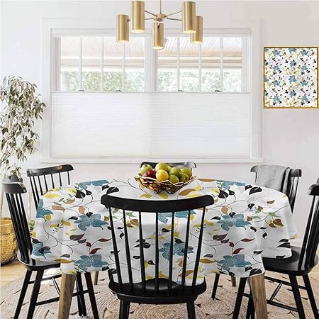 Runde Tischdecke Bedruckt Blatt Blaue Blumen Herbstblatter Geeignet Fur Runde Tische Polyester Mehrfarbig08 Diameter 70 Amazon De Kuche Haushalt