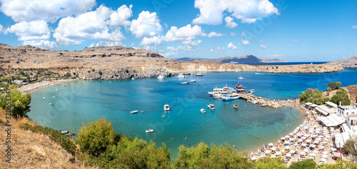 Panoramic View Of Lindos Bay Rhodes Island Greece Buy This Stock Photo And Explore Similar Images At Adobe Stock Adobe Stock