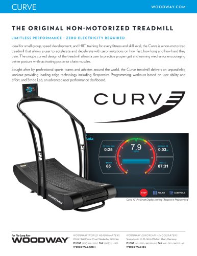 The best quality curved Nonmotorized treadmill on the market TrueForm Runner is over built and over engineered for a superior smooth ride Trueform is the quietest treadmill ever built made in the USA The TrueForm Trainer is a quality value engineered curved nonmotorized treadmill. WOODWAY treadmills feature stateoftheart technology that provides the user with an experience unlike any other Our treadmill belts are comprised of numerous individual shockabsorbing slats that have been scientifically proven to reduce harmful shock to joints, muscles, and connective tissue;. WOODWAY CURVE Der Kalorienumsatz auf dem unmotorisierten CURVE ist etwa 30% höher als auf herkömmlichen Laufbändern Wissenschaftliche Untersuchungen haben gezeigt, dass zügiges Walken auf dem CURVE eine ähnliche Intensität für ein HerzKreislaufTraining besitzt, wie ein Joggen auf normalen motorisierten Geräten.