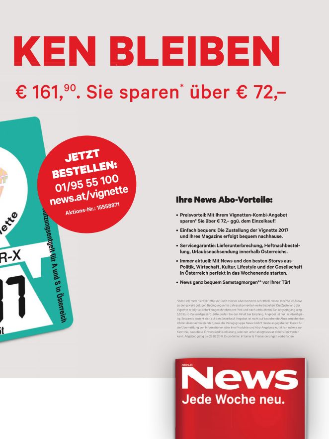 Servus magazin abo vignette. Lieblingsmagazin PKW Vignette 21 zum Vorzugspreis bestellen Die Vignette wird eingeschrieben nach verbuchter Zahlung ab 112 versandt Servus Magazin – 12 Ausgaben jährlich Bergwelten – 8 Ausgaben jährlich Terra Mater – 6 Ausgaben jährlich The Red Bulletin – 12 Ausgaben jährlich Bühne – 10 Ausgaben jährlich. Haben Sie Fragen, Anregungen, ein ganz konkretes Anliegen?. Auch für die Laufzeiten des Servus Magazin GeschenkAbos gilt die oben genannte Kündigungsfrist Das Servus Magazin ePaper Abo können Sie für einen Zeitraum von 30 en kostenlos testen und jederzeit kündigen Erfolgt innerhalb dieser 30 e keine Kündigung, dann wird Ihr Abo automatisch kostenpflichtig.