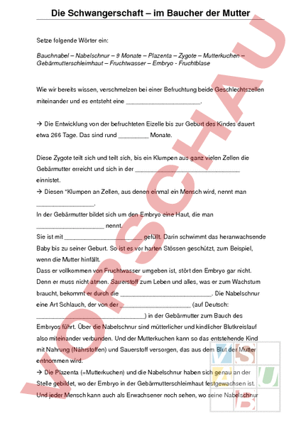 Während Ihrer Schwangerschaft können Sie bereits den Grundstein für die Mundgesundheit Ihres Kindes legen Kariesverursachenden Bakterien werden erst mit dem Speichel auf das Kleinkind übertragen werden, in der Regel durch die Eltern Daher ist es wichtig, das Übertragungsrisiko schon bei den Eltern zu reduzieren, denn es gilt Je mehr. Arbeitsblätter für Biologie Schwangerschaft meinUnterricht ist ein fächerübergreifendes OnlinePortal für Lehrkräfte, auf dem du hochwertiges Unterrichtsmaterial ganz einfach herunterladen und ohne rechtliche Bedenken für deinen Unterricht verwenden kannst. Download (PDF) » Arbeitsblatt Lösungsblatt Sie können dieses Suchsel Schwangerschaft und Geburt kostenlos als fertiges Arbeitsblatt (PDFDatei, 249kb) herunterladen und in Ihrem Unterricht (Schule oder Kindergarten) einsetzen Die PDF besteht aus zwei Seiten Arbeitsblatt für Schüler Lösungsblatt Download des Suchsel als PDF.