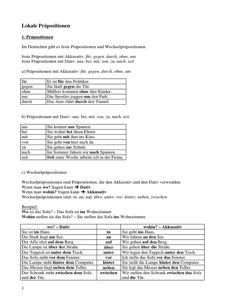 Lokale Prapositionen Pdf
