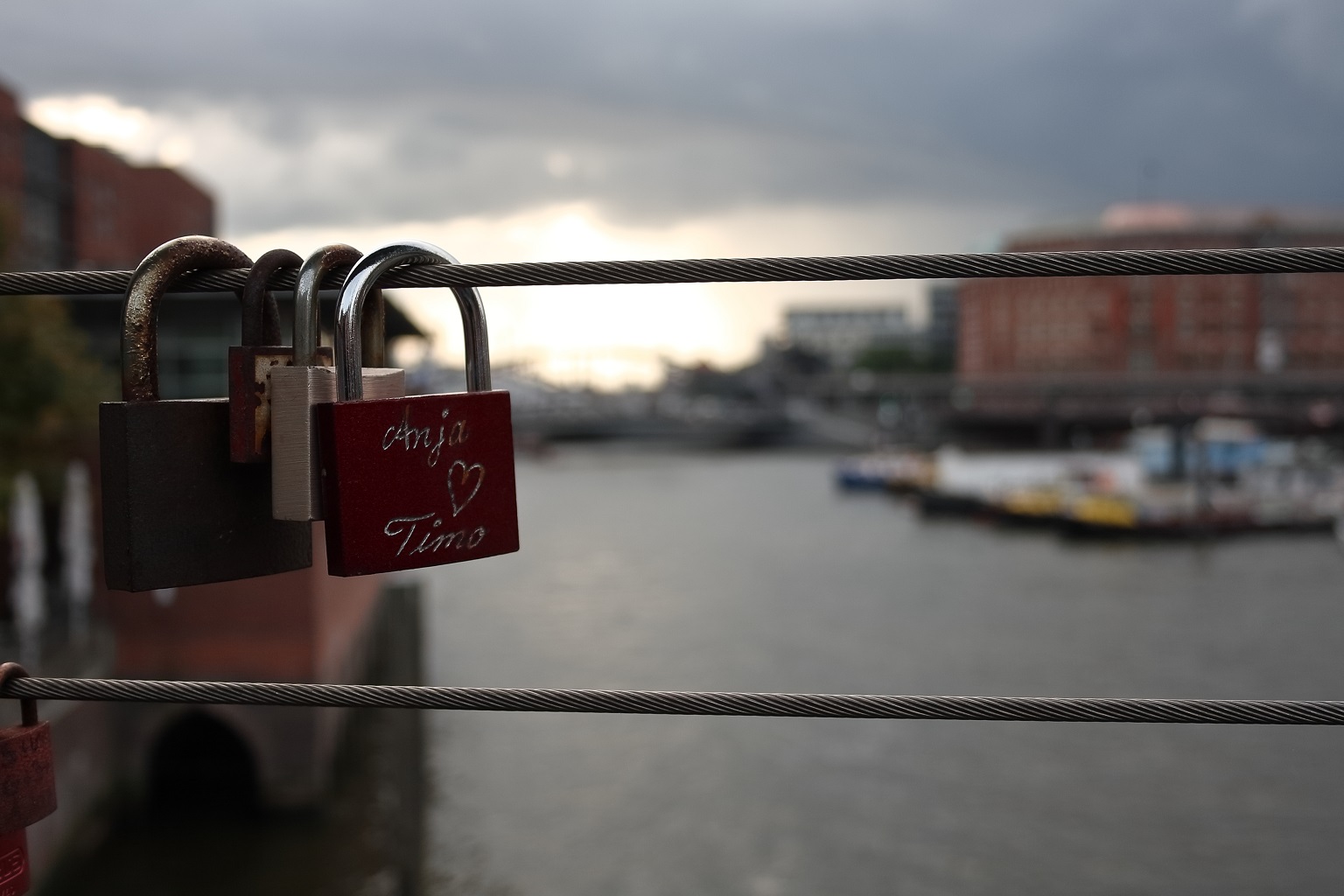 Die Liebesschlösser in Hamburg Die Hansestadt Hamburg ist die brückenreichste Stadt in ganz Europa und mit 1,75 Millionen Einwohnern Stand die zweitgrößte Stadt Deutschlands Hamburg bersitzt um die 2500 Brücken, welche die vielzähligen Fleete, Flüsse und Kanäle überspannen. Die wohl bekannteste Brücke für Liebesschlösser in Deutschland ist die Hohenzollernbrücke in Köln Dort hängen derzeit bereits 40 000 Liebesschlösser am Geländer Gern genutzt werden auch die Thalkirchner Brücke in München, die Loschwitzer Brücke in Dresden und der Eiserne Steg in Frankfurt/ Main. Das Ritual mit dem Liebesschwur Stelle mir vor wie die glücklich Verliebten ihr Schloss an der Brücke befestigen, den Schlüssel in den Fluss werfen und sich wünschen, die Liebe möge ewig halten Nur, die Brücke führt nicht über einen Fluss – statt im Wasser würde der Schlüssel auf der Strasse landen Ewige Liebe.