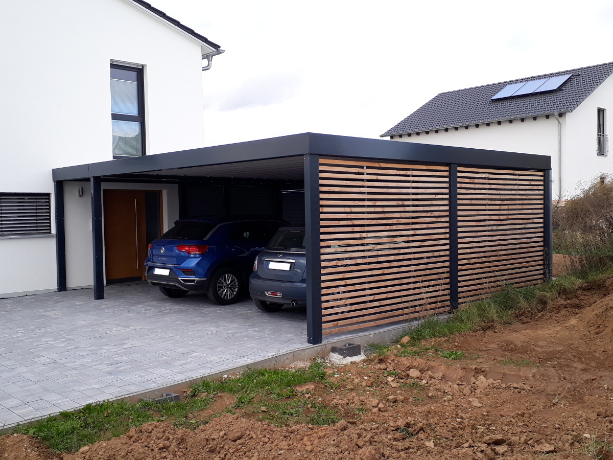 Doppelcarport Metall Holz Stahl Abstellraum Modern Anthrazit Stahlzart