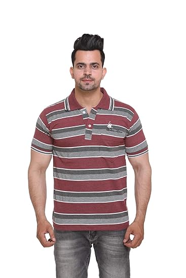 Buy Bolero Mens Striper Polo T Shirt With Pocket Maroon At Amazon In