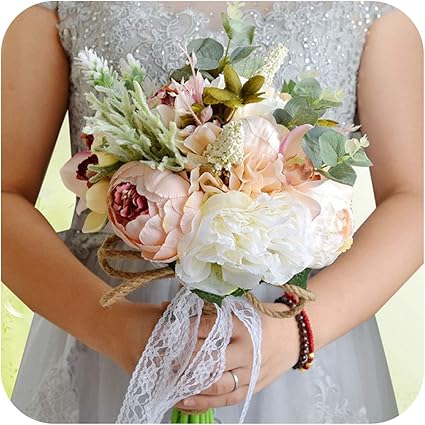 Amazon De Slogan Not Fake Flower Blumenstrauss Casamento Rosa Weiss Rot Blumen Brautstrauss Vintage