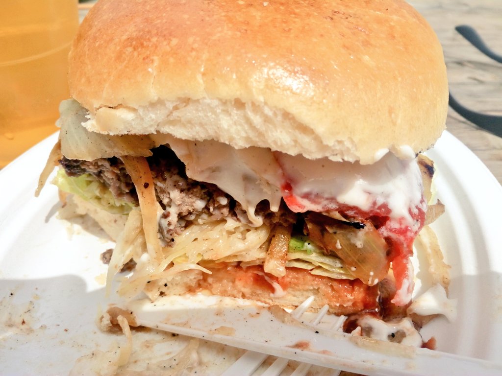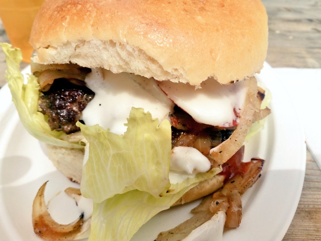 Sergej Ivanov Bootshaus Burger Rindfleisch Zwiebeln Krautsalat Tomate Salat Spezialsosse Super Lecker