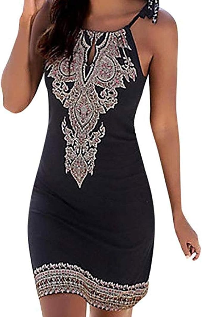 Sporzin Damen Kleid Dress Sommerkleid Elegant Boho Strandkleid Armellos Einstellbar Cocktailkleid Minikleid Abendkleid Streifen Lassige Bedrucktes Amazon De Bekleidung