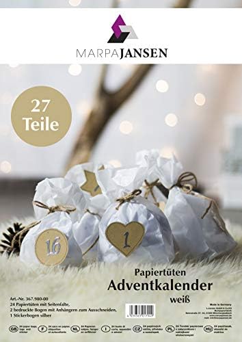 Marpajansen 367 980 00 Adventskalender Set Aus Butterbrottuten Inkl 36 Papieranhangern Zum Ausschneiden 24 Stickern Weiss Braun Silber Mehrfarbig One Size Amazon De Kuche Haushalt