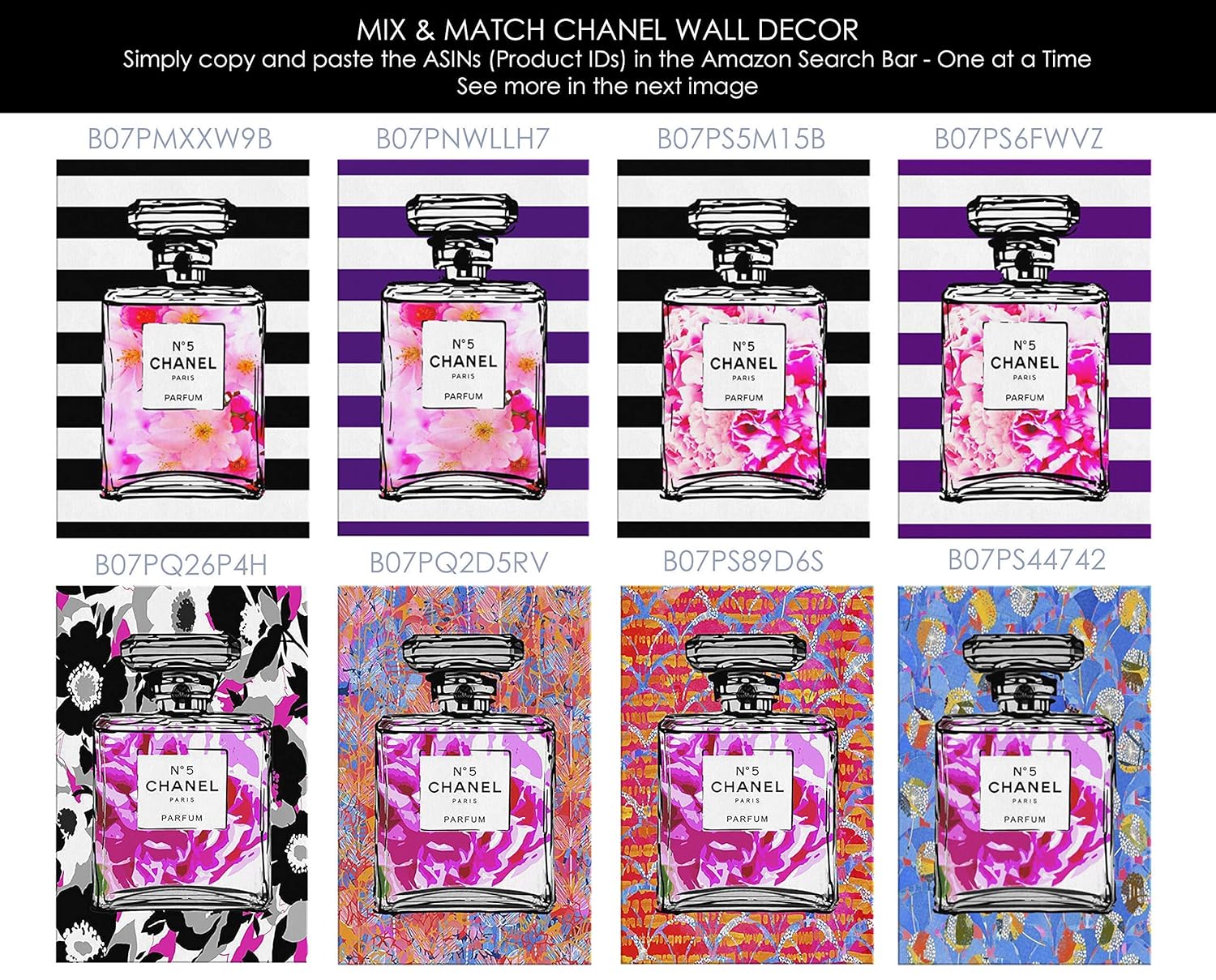 Amazon Com Fashion Inspired Art Wall Decor Perfume Canvas Painting Fashion Room Pictures Glam Pop Art Boho Wall Art Pink Black White Room Decor Living Room Bedroom 5 Sizes