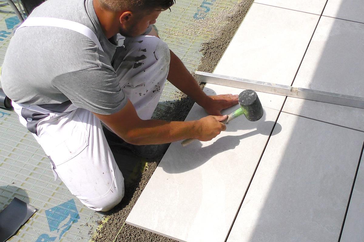 VideoTutorial von Marazzi Trockenverlegung von Feinsteinzeugplatten in der Überstärke mm auf Sand.