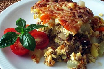 Gemuseauflauf Mit Kartoffelpuree Und Fleischkase