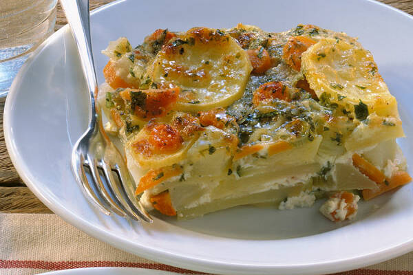 Mensa Stimm Gabel Mediterraner Kartoffel Gemuse Auflauf Mit Hirtenkase Dazu Krautersosse