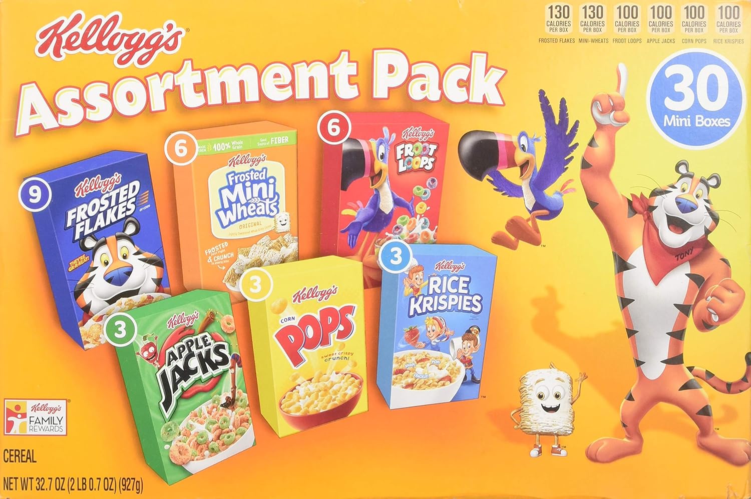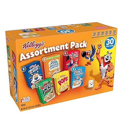 Amazon Com Discontinued By Manufacturer Kellogg S Breakfast Cereal Assortment Pack Frosted Flakes Frosted Mini Wheats Froot Loops Apple Jacks Corn Pops And Rice Krispies 32 7 Oz Tray 30 Count