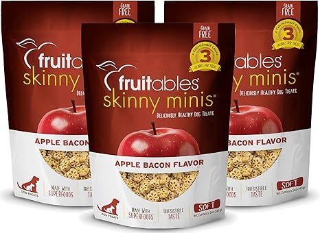 Amazon Com Fruitables Skinny Minis 5 Ounce Apple Bacon Low Calorie Soft And Chewy Training Treat Pack Of 3 Pet Supplies