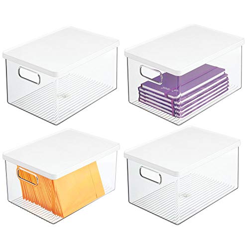 Mdesign 4er Set Schreibtischablage Fur Stifte Notizzettel Usw Aufbewahrungsbox Mit Griffen Und Deckel Aus Robustem Kunststoff Ordnungshelfer Fur Buromaterialien Durchsichtig Weiss Moebel Suchmaschine Ladendirekt De