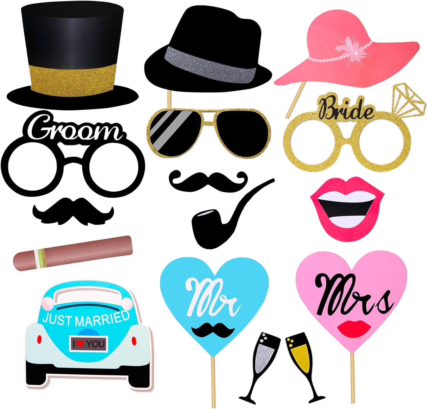 Vigorea Photo Booth Hochzeit 54 Stuck Fotobox Accessoires Hochzeit Foto Booth Props Diy Kit Mit Hute Lippen Schnurrbart Glaser Und Mehr Auf Sticks Amazon De Spielzeug