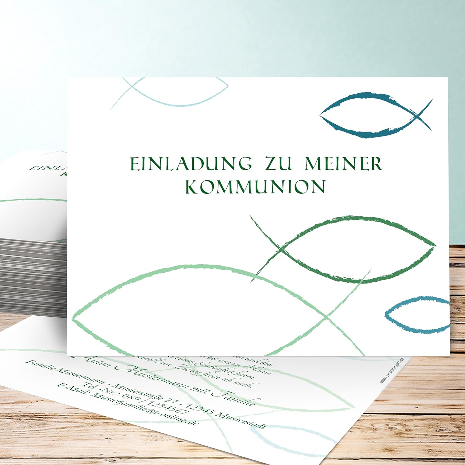 Einladungskarten Kommunion Bastelset Meine Fotokarte 175 Karten Vertikale Klappkarte 105x148 Inkl Umschlage Grun Amazon De Kuche Haushalt