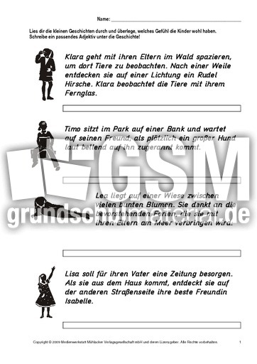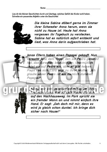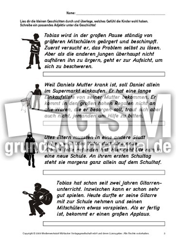 Ab Was Kinder Fuhlen Geschichten 1 Arbeitsblatter Gefuhle Themen Und Projekte Hus Klasse 3 Grundschulmaterial De