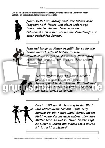 Ab Was Kinder Fuhlen Geschichten 4 Arbeitsblatter Gefuhle Themen Und Projekte Hus Klasse 3 Grundschulmaterial De