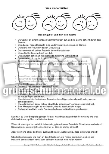 Was Kinder Fuhlen Text Texte Gefuhle Themen Und Projekte Hus Klasse 3 Grundschulmaterial De