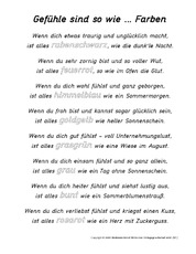Gefuhle Sind So Wie Farben Text Texte Gefuhle Themen Und Projekte Hus Klasse 3 Grundschulmaterial De