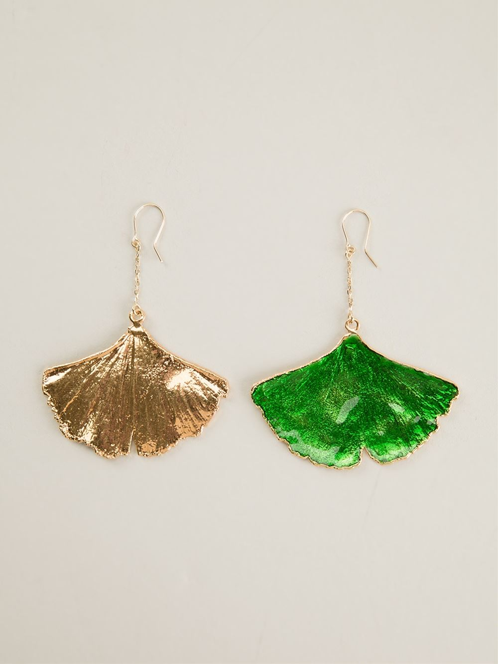 Aurelie Bidermann Ginkgo Earrings In Green Lyst