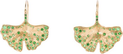 Aurelie Bidermann Ginkgo Leaf 18kt Gold Tsavorite Drop Earrings Modesens