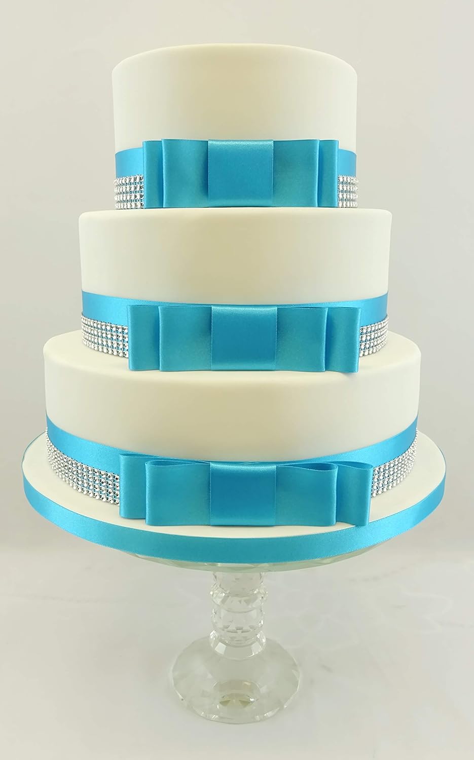 Hochzeit Kuchen Schleife Set Satin Turkis Ribbon Silber Diamantenverzierung Tortenaufsatz Amazon De Kuche Haushalt