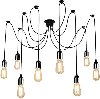 Uflizogh Pendelleuchte Vintage Industrie Spinne Kronleuchter 8 Kopfe E27 Edison Birne Loft Langeverstellbare Schwarz Scheune Hangelampe Fur Wohnzimmer Kuche Cafe Keine Gluhbirnen Amazon De Beleuchtung