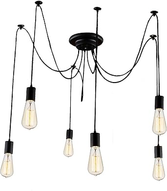 Asvert Pendelleuchte Vintage Multi Cord Edison Birne Loft Schwarz Spider Lampe Scheune Hangelampe Beleuchtung Schwarz Ohne Leuchtmittel 6 Kopfe Amazon De Beleuchtung