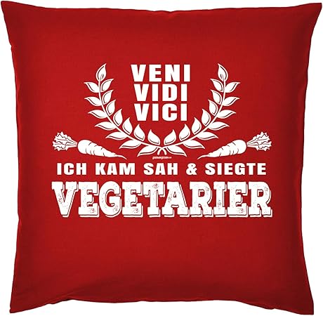 Titagu Spass Statement Deko Kissen Inkl Fullung Rubrik Lustige Spruche Ernahrung Veni Vidi Vici Ich Kam Sah Siegte Vegetarier Amazon De Garten